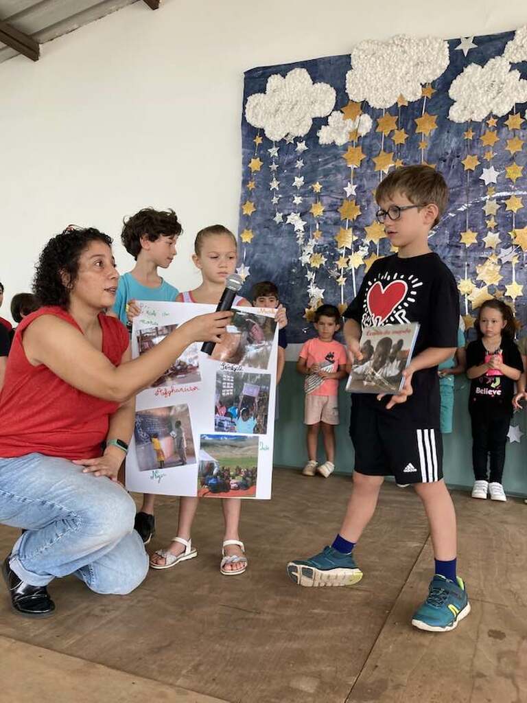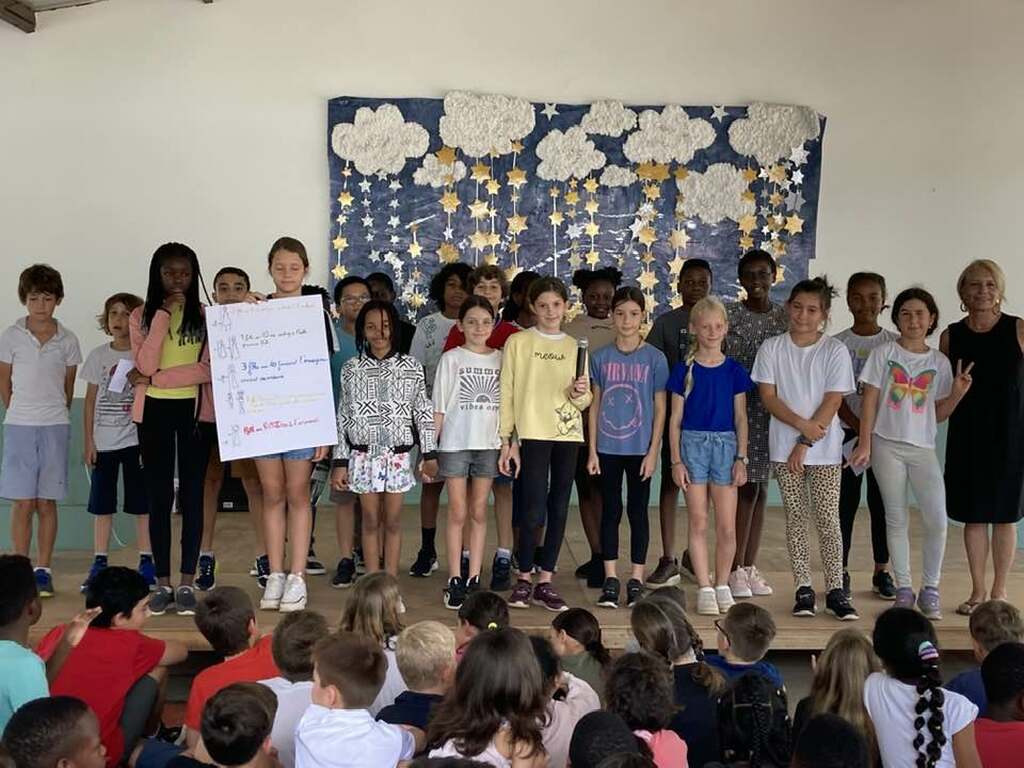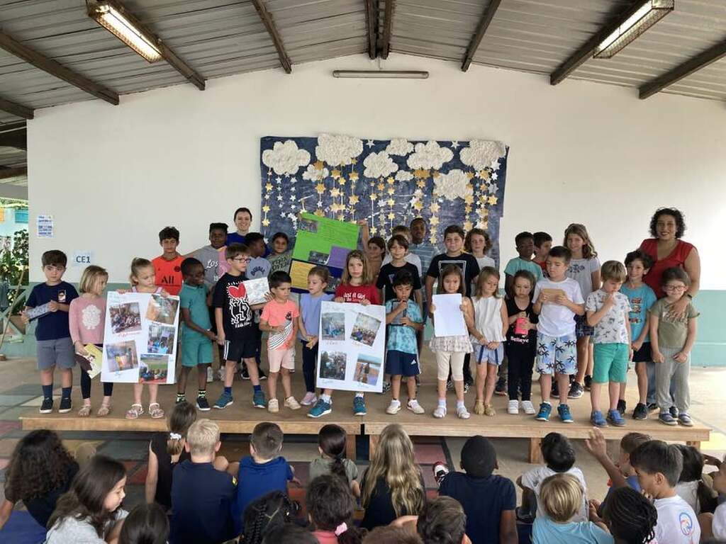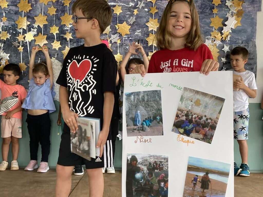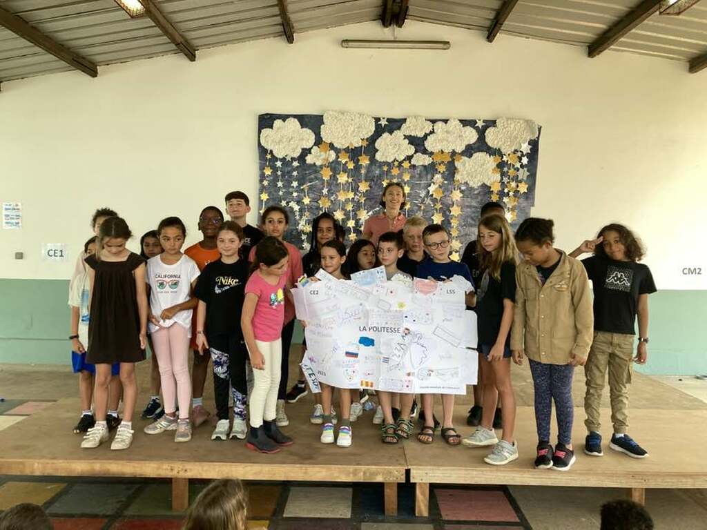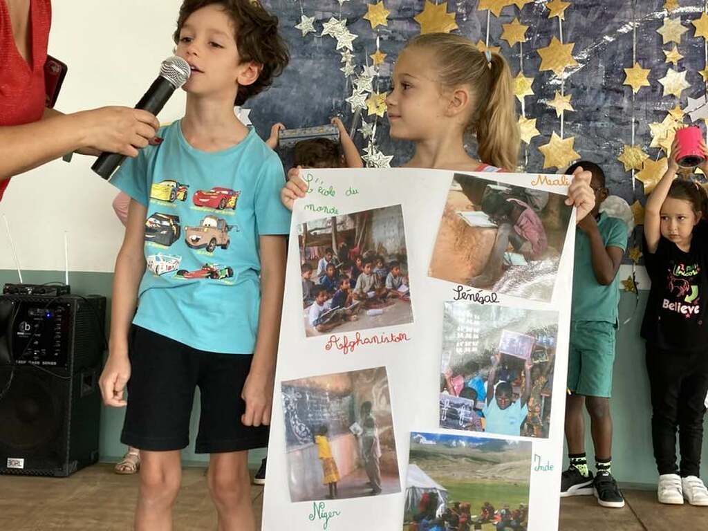 Dans le cadre de la journée mondiale de l’Education, les élèves de la GS au CM2 ont présenté à leurs camarades une synthèse de leurs réflexions sur des thèmes liés à l’éducation dans le monde: l’aspect matériel, le problème des transports, l'accueil des élèves handicapés, le respect des autres et la politesse ainsi que l’égalité filles/garçons. Félicitations à eux pour la prestation réalisée !