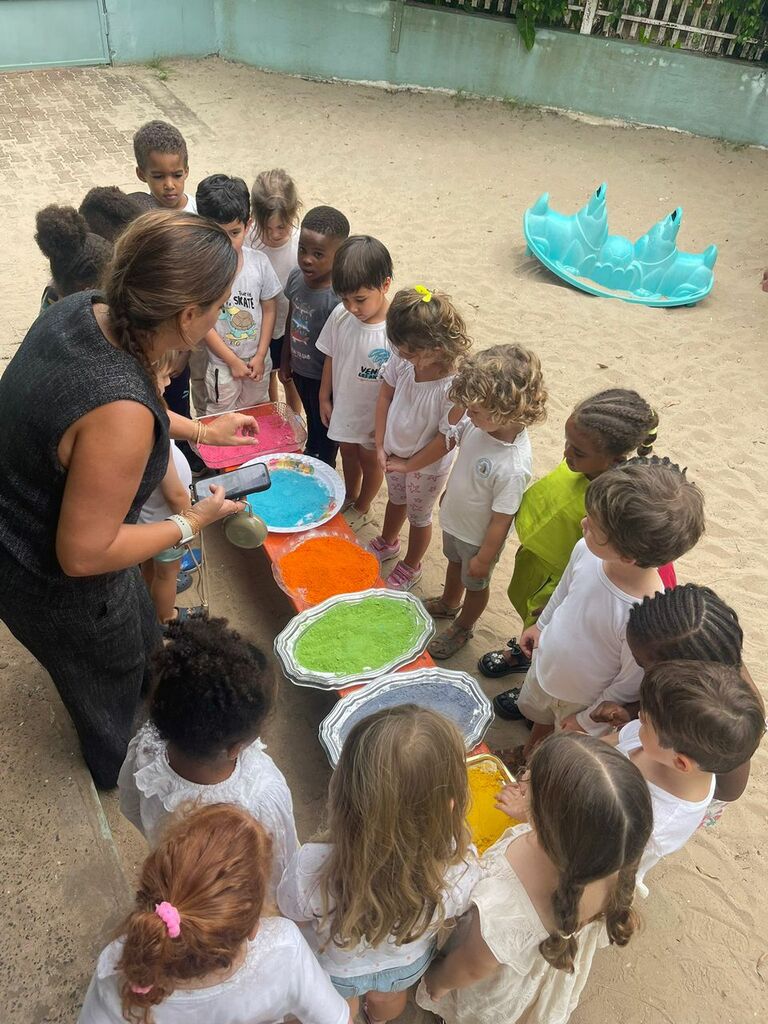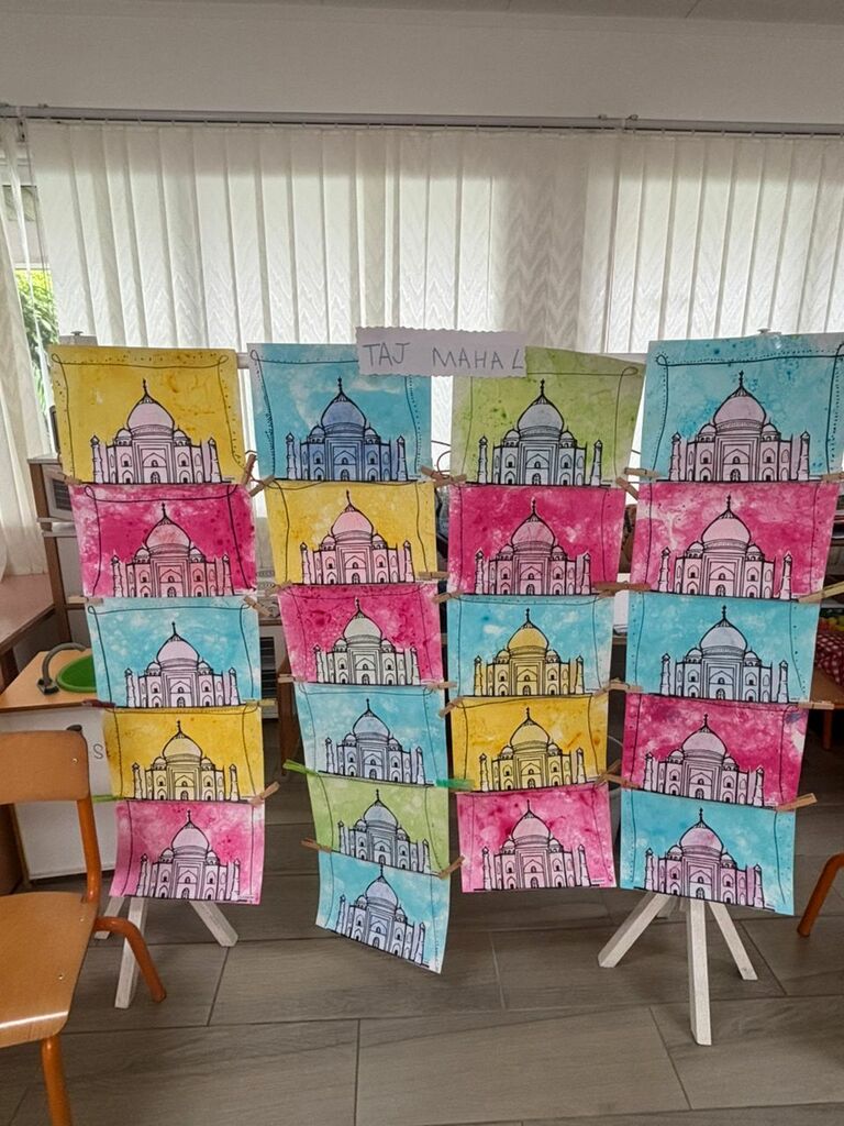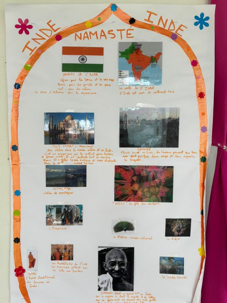 Les élèves de moyenne section nous ont offert une très belle exposition autour de l’Inde. À travers ce projet riche et coloré, ils ont découvert avec émerveillement ce magnifique pays en explorant Gandhi, le Taj Mahal, les paons, les éléphants ainsi que leur superbe danse traditionnelle. Les enfants ont participé avec beaucoup de joie, de curiosité et d’enthousiasme, montrant tout leur investissement et leur fierté de partager leurs réalisations. Nous avons célébré HOLI la fête des couleurs à l’école …